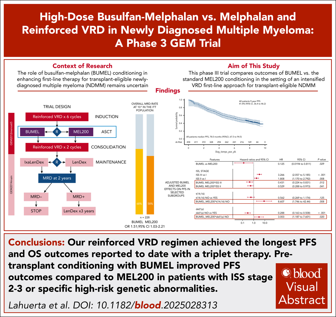 High-dose busulfan-melphalan vs melphalan and reinforced VRD for newly diagnosed multiple myeloma: a phase 3 GEM trial