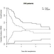 In the present study, we considered the more recent period from January 2007 to December 2011 and we collected information on patients with AML and ALL transplanted in first (CR1) and second CR (CR2). Also, we considered only T repleted haplo mismatch transplants. During this period a total of 193 fully documented haplomismatch and 2252 ASCT were reported to the EBMT registry.