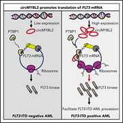 Sun et al identify a circular RNA, circMYBL2, that upregulates FLT3 translation to promote FLT3-ITD acute myeloid leukemia (AML) progression, suggesting a novel therapeutic target for FLT3-ITD AML.