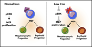 Xavier-Ferrucio and colleagues elucidate the mechanism of thrombocytosis in iron deficiency anemia, using murine and human cell models to demonstrate that iron deficiency attenuates ERK signaling and biases the commitment of megakaryocyte-erythrocyte progenitors toward the megakaryocytic lineage.