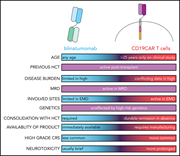 Using 5 instructive real-life examples, Aldoss and Forman consider the advantages, limitations, and challenges of therapy with blinatumomab and anti-CD19 chimeric antigen receptor T cells for adult patients with relapsed or refractory B-lineage acute lymphoblastic leukemia. These insights should assist physicians and patients in making treatment decisions in 2020 while we await the outcomes of further clinical trials.