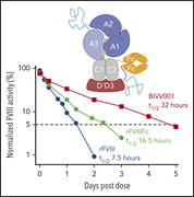 Seth Chhabra et al describe a new factor VIII (FVIII) variant created through protein engineering that has similar functional activity to recombinant or plasma-derived FVIII but with considerably enhanced pharmacokinetic properties. This may enable convenient scheduling to achieve protection against bleeding in conditions of severe hemostatic challenge.