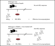 Poly(I:C) causes failure of immunoprophylaxis to red blood cells expressing the KEL glycoprotein in mice