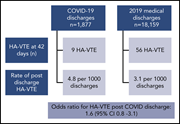 In these 2 independent studies from Boston and London, the authors report cohort studies that suggest, respectively, that there is no significant increase in the risk of postdischarge thrombosis and bleeding or of venous thromboembolism specifically after admission for COVID-19, compared with that associated with other acute medical illnesses.