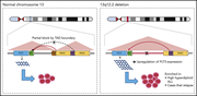 FMS-like tyrosine kinase 3 (FLT3) somatic mutations are common driver mutations in acute leukemia. Yang et al used three-dimensional (3D) modeling to demonstrate that a subset of acute lymphoblastic leukemia harbors a small deletion in chromosome 13q12.2, leading to the overexpression of FLT3 in the absence a coding mutation. Lying 3’ of the FLT3 gene, the deletion alters the 3D interactions between a downstream enhancer and FLT3.
