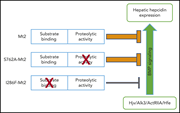 Matriptase-2 (MT2) suppresses hepcidin expression, a key regulator of iron metabolism. Though it is presumed to act by cleaving proteins in the BMP signaling pathway that upregulate hepcidin, the authors demonstrated that although MT2 does cleave key components in the hepcidin-induction pathway, its activity is dependent on substrate binding, and that proteolytic activity is dispensable for hepcidin regulation.