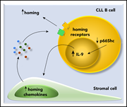 Patrussi and colleagues describe a complex, interleukin-9 (IL-9)–dependent signaling pathway underlying the cross talk between chronic lymphocytic leukemia (CLL) and stroma cells, highlighting the exquisite dependency of leukemia cells on their microenvironment for survival and proliferation. They identify CLL-derived IL-9 as a niche-remodeling cytokine that generates a promigratory environment for tumor cells; antagonism of IL-9 in a murine model impairs pathogenicity. These data shine new light onto how to target CLL-mediated activation of stroma cells and may have therapeutic implications.