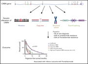Cereblon binding is essential to the function of lenalidomide and pomalidomide as antimyeloma agents. In this first comprehensive analysis of cereblon alterations in myeloma as patients sequence through lines of therapy, Gooding et al found that genetic alterations in cereblon identified after progression on lenalidomide predict for early pomalidomide failure and occur in myeloma in one-third of patients with pomalidomide-refractory disease.