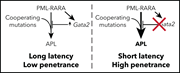 Katerndahl et al investigate genes dysregulated by PML-RARA in mouse and human cells and demonstrate that GATA2 is highly expressed in preleukemic cells expressing PML-RARA; furthermore, somatic GATA2 mutations occur during progression of acute promyelocytic leukemia (APL). They demonstrate that GATA2 knockout increases APL penetrance and decreases latency, while restoration of GATA2 expression suppresses penetrance and increases latency. These studies suggest a role for GATA2 as a tumor suppressor in AML development.