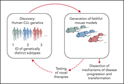 Studies of the pathogenesis of chronic lymphocytic leukemia (CLL) have been hampered by disease heterogeneity, the limited number of CLL cell lines, and the difficulty in manipulating primary B cells to express potential driver genes of interest. In a definitive review, ten Hacken and Wu describe the contribution of mouse models to study the pathogenesis and treatment of CLL, where genetic strategies allow modeling the full range of CLL phenotypes from indolent to transformed disease.