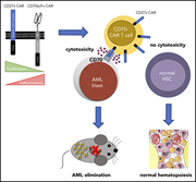 CD70 is a promising target in acute myeloid leukemia (AML) due to its expression on AML blasts and leukemia stem cells and lack of expression on normal hematopoietic stem cells. CD27 is the ligand for CD70 and can be used in chimeric antigen receptor (CAR) constructs. Sauer and colleagues show that CD27z CAR T cells can effectively eliminate AML cells in vitro and in vivo without affecting normal hematopoiesis in model systems, providing preclinical support for clinical trials.