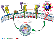 Severe acute respiratory syndrome coronavirus 2 (SARS-CoV-2) infection activates acid sphingomyelinase (ASMase). Macrophages infected with SARSCoV-2 spike pseudovirus were immunostained for ASMase (red). The plasma membrane was stained with PKH67 (green) and nuclei with 4′,6-diamidino-2-phenylindole (DAPI) (blue). The yellow color patches on the plasma membrane depict the translocation of ASMase to the outer leaflet. See the article by Wang et al on page 344.