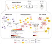 Borella et al investigated the cross talk between pediatric AML cells and the bone marrow niche. They demonstrate that AML cells reprogram mesenchymal stromal cells (MSCs) within the niche and modulate their transcriptional pathways to facilitate leukemia cell expansion. In an in vitro 3-dimensional niche implanted in mice, suppressing MSCs in combination with chemotherapy acted synergistically to suppress AML cell proliferation.