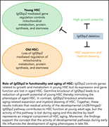 Aging is associated with impaired hematopoietic stem and progenitor cell (HSPC) function, leading to decreased growth and repopulation capacity and myeloid skewing. Suo et al investigated the role of Igf2bp2, an RNA-binding protein highly expressed in young but not old mice, in the aging HSPC phenotype. Deletion of Igf2bp2 in young mice phenocopies the aging phenotype, suggesting an important role in the age-related changes in HSPCs.