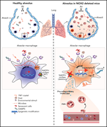 Chronic granulomatous disease (CGD) is caused by mutations of the leukocyte NADPH oxidase 2 (NOX2) and is associated with increased infections. It is also characterized by sterile inflammation, the mechanism of which is poorly understood. In this Plenary paper, Bhattacharya et al demonstrate in a mouse model of CGD that normal alveolar macrophages (AMs) have an anti-inflammatory influence on lung inflammation and that AMs arising from NOX2-null monocytes stimulate inflammatory pathways, suggesting an explanation for excess non-infectious inflammation.