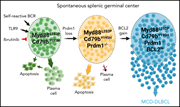 Through genomic profiling, activated B-cell-like diffuse large B-cell lymphoma (DLBCL) is now recognized to have distinct subgroups that may have distinct cells-of-origin. Pindzola et al generated immunocompetent mice carrying 4 hallmark genetic alterations associated with the MYD88/CD79B-mutated (MCD) genetic subgroup. The mice showed a massive expansion of splenic germinal centers and developed DLBCL with age, revealing splenic germinal center B cells as a likely cell of origin for this subgroup.