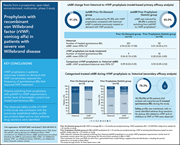 International guidelines suggest long-term prophylaxis in patients with von Willebrand disease (VWD) and recurrent severe or frequent bleeds. Leebeek and colleagues report on the results of a nonrandomized trial of recombinant von Willebrand factor (rVWF) prophylaxis, finding reductions in spontaneous bleeding rates in patients previously on plasma-derived VWF (pVWF) “on-demand” therapy and similar levels of control over spontaneous bleeding in patients switching from prophylactic pVWF.