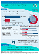 Kater and colleagues report on 5-year outcomes for patients with relapsed or refractory chronic lymphocytic leukemia (CLL) when treated with fixed-duration venetoclax-rituximab (VenR) in a pivotal randomized trial. Over 50% of patients who completed a 3-year VenR treatment have not progressed, and median time to next treatment is 58 months. Of 43% of patients with no measurable residual disease (MRD) at completion of VenR, 39% remained MRD-negative 3 years later, emphasizing the durability of the benefits for many patients.