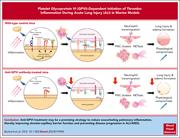 Lung intravital confocal microscopy shows platelets (cyan) and neutrophils (yellow) forming clusters in the pulmonary vasculature (magenta) in a model of lipopolysaccharide-induced acute lung injury. Anti-glycoprotein VI treatment significantly reduces this cluster formation, pulmonary inflammation, and tissue damage. See the article by Burkard et al on page 1463.