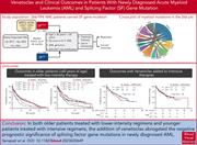 Splicing factor (SF) gene mutations are classified as adverse risk in the European LeukemiaNet risk stratification of acute myeloid leukemia (AML). Senapati et al performed a retrospective analysis of 994 newly diagnosed patients with AML, of which 27% had an SF mutation, to determine the impact of SF mutations in patients treated with low-intensity regimens. In patients treated with intensive therapy, the negative impact of SF mutations on survival was confirmed. In those treated with venetoclax, whether in a low-intensity regimen or added to an intensive regimen, survival was improved, and the negative impact of SF mutations was abrogated.