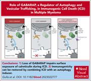 Bortezomib kills multiple myeloma (MM) cells by inducing immunogenic cell death (ICD). Although it induces durable responses, most patients develop bortezomib resistance and relapse. Gulla et al propose that resistance is linked to low expression of GABA type A receptor–associated protein (GABARAP) which decreases surface expression of calreticulin, an “eat me” signal mediating ICD. GABARAP is on chromosome 17p, often deleted in high-risk MM, and low GABARAP expression predicts decreased MM survival. GABARAP deletion blocks autophagy, and inducing autophagy with rapamycin restores bortezomib responsiveness in vitro, which is a potential approach to enhance bortezomib response.