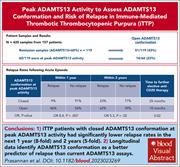 Patients with immune-mediated thrombotic thrombocytopenic purpura (iTTP) respond well to current therapies, but 40% relapse within 5 years. It has been described recently that the molecular configuration of ADAMTS13 in acute iTTP is open and not all patients in remission revert to a closed conformation. Prasannan et al examined the predictive value of continued open conformation in remission by assessing patients at peak ADAMTS13 levels postrecovery. Patients with a closed conformation had a much lower relapse rate at 1 year (9% vs 46%) and 2 years (23% vs 62%). ADAMTS13 conformation identifies patients requiring closer monitoring to optimize preemptive therapy.