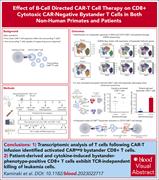 B-cell–directed CAR T-cell therapy activates CD8+ cytotoxic CARneg bystander T cells in patients and nonhuman primates