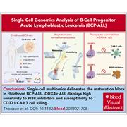 Thorsson et al performed single-cell sequencing strategies to delineate the characteristics that differ among molecular subtypes of B-cell progenitor acute lymphoblastic leukemia (BCP-ALL). The authors focused on the DUX4-rearranged subtype, recently described as unique in displaying a signature resembling more mature B cells and displaying lineage infidelity, aberrant CD371 expression, and an activation of the phosphatidylinositol 3-kinase (PI3K)/AKT pathway. This suggests that this subtype of BCP-ALL might have a unique therapeutic response to PI3K inhibition and CD371 targeting.