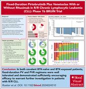 Roeker and colleagues report the results of a phase 1b trial of the noncovalent Bruton tyrosine kinase inhibitor pirtobrutinib plus venetoclax with rituximab (PVR) or without rituximab (PV) for relapsed/refractory (R/R) chronic lymphocytic leukemia (CLL). Therapy was well tolerated, and responses were excellent, with overall responses over 90% (93% for PV and 100% for PVR); 90% of patients treated with PVR achieved undetectable minimal residual disease in the peripheral blood. Both regimens have promising efficacy for R/R CLL.