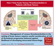 Venous thromboembolism (VTE) is common in patients with brain tumors, and management is challenging due to the risk of intracranial hemorrhage. Leader and colleagues discuss their approach to the management of acute VTE through 3 illustrative cases that highlight the need to balance hemorrhagic risk with the need for anticoagulation.