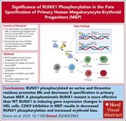 The megakaryocytic (Mk) and erythroid lineages arise from Mk-erythroid progenitors (MEPs), but the pathways that regulate lineage choice are not defined. RUNX1 is a key modulator of this cell fate decision, and Kwon et al demonstrate that overexpression of RUNX1 in primary human MEPs promotes Mk maturation. The authors show that cyclin dependent kinase 9 (CDK9) phosphorylation of RUNX1 modulated MEPs toward Mk differentiation, while CDK9 inhibition shifted them toward erythroid maturation.