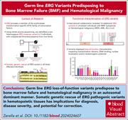 In this Plenary Paper, Zerella and colleagues describe a novel bone marrow failure syndrome associated with a tendency to hematological malignancy (HM), reflecting a germ line haploinsufficiency of ETS-related gene (ERG). ERG is a transcription factor that is known to be critical for hematopoiesis. Initially identified in 3 family members with inherited thrombocytopenia, a large international collaboration yielded 14 other unrelated individuals with diverse ERG mutations. The pathophysiology underlying the surprising finding that the patients were also predisposed to HM remains to be further delineated.