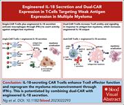 In multiple myeloma, the currently available chimeric antigen receptor (CAR) T cells do not appear to be curative, and new constructs and approaches are needed. Using immunocompetent mouse models, Ng and colleagues demonstrate that interleukin-18 (IL-18)–secreting CAR T cells promote clearance of antigen-low myeloma with reprogramming of cells in the myeloma microenvironment and that antimyeloma activity can be further enhanced by targeting multiple-surface antigens by increasing T-cell–target avidity and IL-18 output. These data suggest a potential clinically applicable method for future treatment of myeloma.
