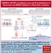 Resistance to BCL2 and MDM2 inhibitors such as venetoclax and idasanutlin is common in acute myeloid leukemia (AML) cells of the monocytic lineage. Allen et al provide insights into the mechanisms of resistance, describing a positive feedback loop involving interleukin-1 (IL-1)/tumor necrosis factor alpha (TNF-α)/NF-κB pathway members regulated by CEBPB, which promotes monocytic differentiation and confers drug resistance. These findings suggest that AML therapy could potentially be improved by testing strategies aimed at suppressing inflammatory cytokines and key transcription factors.