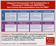 Among myeloid neoplasms (MNs), there are a large number of rare disease entities, collectively “nonclassical” myeloproliferative and myelodysplastic/myeloproliferative disorders, defined by prominent clinical and/or genetic features, for which high quality data on definitive management, including allogeneic hematopoietic stem cell transplant (allo-HCT), are lacking. In this Special Report, Polverelli and colleagues from 2 international working groups synthesize the available data and provide guidance on the role of allo-HCT in 8 “nonclassical” entities. Where the evidence allows, the authors make recommendations about prognostication and timing of transplant, and they suggest alignment with preparatory regimens and transplant policies used routinely for more common “classical” MNs.