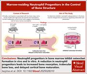 Clinically, neutropenia is linked to low bone mass, suggesting a homeostatic role for bone marrow neutrophils. Isojima et al demonstrate in mouse models that preneutrophils and immature neutrophils inhibit osteoclast formation and help maintain bone integrity. Loss of neutrophil progenitors results in increased bone resorption, trabecular bone loss, and delayed cortical bone maturation. These findings support the conclusion that neutrophil progenitors preserve bone homeostasis by releasing soluble factors that directly suppress osteoclast formation.
