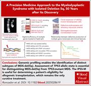 Roncador and colleagues trace the evolution of what we now recognize as myelodysplastic syndrome with isolated deletion 5q (MDS-5q) from its original description through being considered as a discrete clinical entity into one that includes other genetic abnormalities and whose clinical course is heavily influenced by comutations. This Special Report from a team of experts provides strong diagnostic and management principles for clinicians, clinical trialists, and researchers alike and highlights the ongoing role of lenalidomide in management and the imperative to identify patients with multihit TP53 mutations. With allogeneic transplantation remaining the only curative therapy, the precision medicine approach that they outline enables risk-based decision-making by patients and their physicians considering this option.