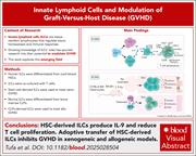 Innate lymphoid cells (ILCs) are lymphocytes that lack rearranged antigen-specific receptors and play a crucial role in maintaining immune homeostasis. Prior studies indicate a protective effect against graft-versus-host disease (GVHD), prompting Tufa et al to investigate the mechanism. The researchers found that ILCs induce T-cell senescence via secretion of interleukin-9 (IL-9) and thereby reduce alloreactive T-cell proliferation and consequent GVHD. These data support further clinical investigation of cellular therapy for GVHD.
