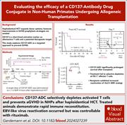 Graft-versus-host disease (GVHD) remains one of the most severe complications of allogeneic hematopoietic stem cell transplantation (SCT). In this preclinical investigation, Gerdemann et al describe a promising new immunotherapeutic approach, showing that a single dose of CD137 antibody–drug conjugate targeting activated T cells can prevent acute GVHD while preserving immune reconstitution in a nonhuman primate model of SCT. This novel targeted approach may prevent the use of prolonged immunosuppressive therapies, setting the basis for future human clinical trials.