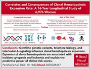 Clonal hematopoiesis of indeterminate potential (CHIP) is associated with increased risk of malignancy, cardiovascular disease, and all-cause mortality. In this longitudinal study involving 6976 women from the Women’s Health Initiative Long Life Study, Pershad and colleagues report specific determinants that contribute to expansion of CHIP clones over a 16-year period in this population. The rate of clonal expansion, a predictor of malignant progression and mortality, is associated with initial clone size, specific mutations, single-nucleotide polymorphisms, telomere length, and interleukin-6 signaling, highlighting the importance of developing dynamic scores to enhance risk stratification.