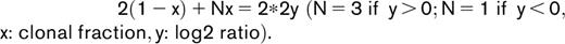 The model of clonal evolution was inferred by using R package fishplot.12 Briefly, for each CNA, clonal fraction was inferred based on the following formula and was fit into the model. To simplify the calculation, only 1 copy gain or loss was considered:
