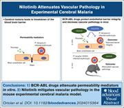 Brain section of a Plasmodium berghei ANKA–infected mouse shows hemorrhages (hematoxylin and eosin stain; image magnified 20×). Brain hemorrhages are decreased in infected mice treated with nilotinib. See the article by Ortolan et al.