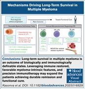 Image showing immune restoration in long-term survivors of multiple myeloma. Enhanced cytotoxic CD8+ T cells, activated natural killer cells, and normal B cells counter suppressive cells, thereby restoring interferon gamma signaling, memory persistence, and cytotoxic function for durable myeloma control. See the article by Kasomva et al.
